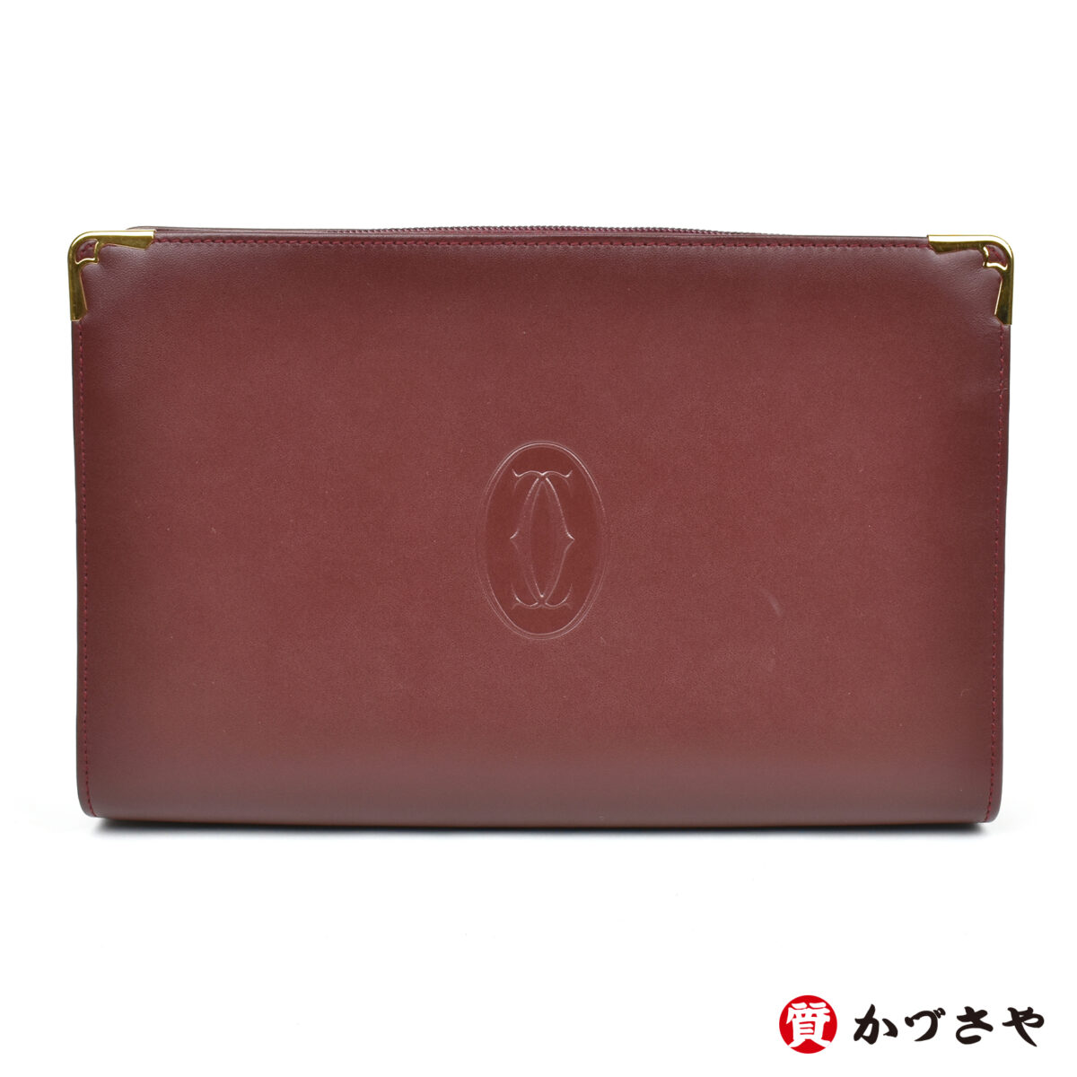 カルティエを象徴する落ち着いたボルドーカラーにゴールドの金具が生える、レトロなキュートさとエレガントな落ち着きが両立したクラッチバッグです。