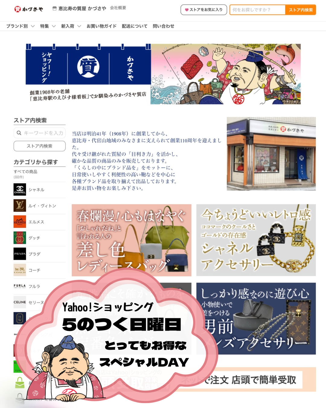 【えびす番頭日記】Yahoo! ショッピング「5のつく日」はお得デー!かづさや質店オンラインストアのご案内👜